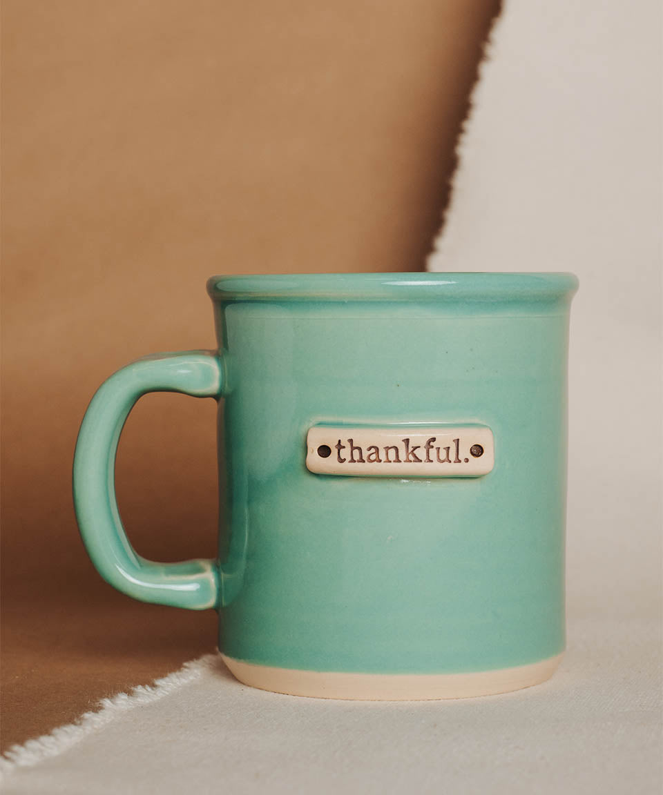 Solid Glazed Mug w/Clay Tag | Thankful